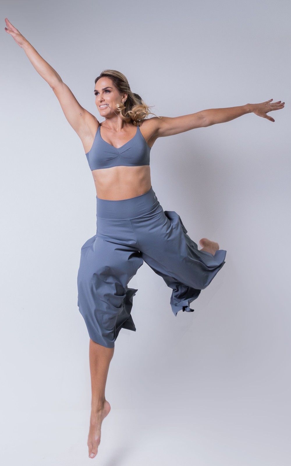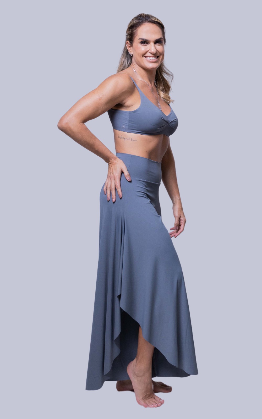 A calça Gabriela é uma opção casual, leve e extremamente confortável, adequada para valorizar o movimento natural do corpo. Sua versatilidade permite que ela seja usada em diversas ocasiões e ambientes. Seu tecido UV mantém sua pele protegida, enquanto o toque fresco do material garante conforto.