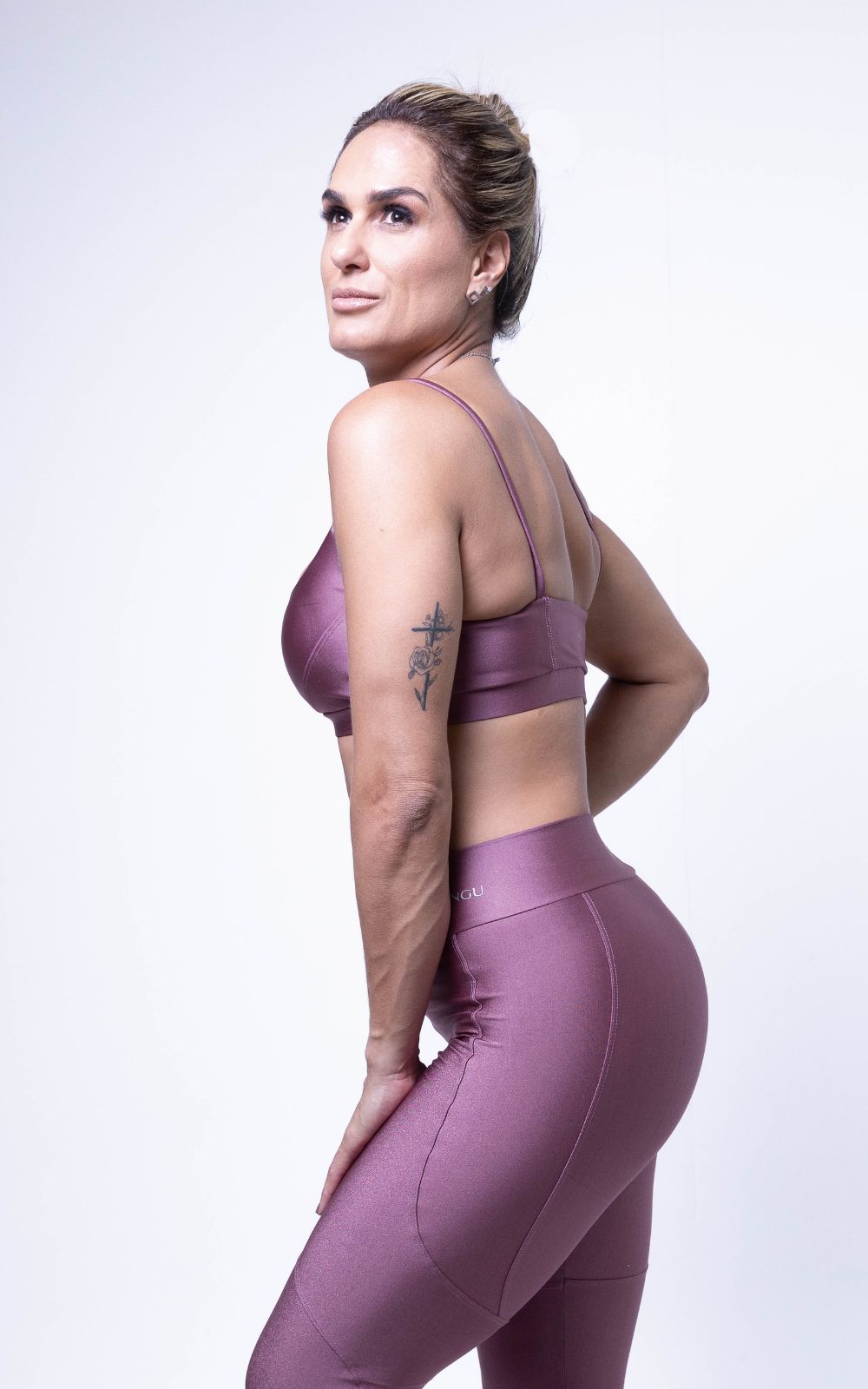 Top com tecido brilhante. Bojo removível, com recortes frontais e traseiros, proporcionando sustentação para a prática de exercícios de médio impacto. É a combinação ideal de elegância e conforto para suas atividades físicas.